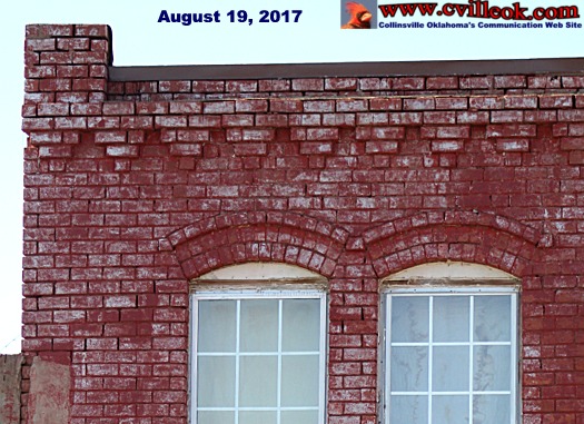 "Rafters" at 1017 W. Main in Collinsville will receive a fresh coat of paint starting September 17th as part of the Oklahoma Main Street "Fresh Paint Days" program. The building was built in 1911 and has seen several occupants in the past century. I have a 1911 photo showing the original (unpainted) brick and a 1960s photo showing a white painted surface which is now showing through a later red paint job. |