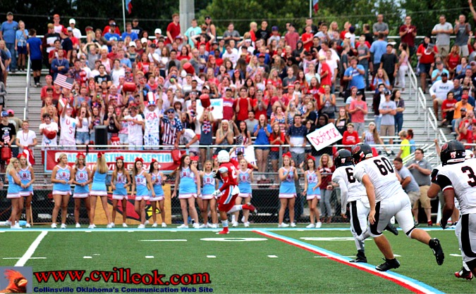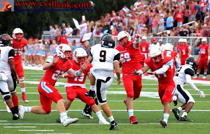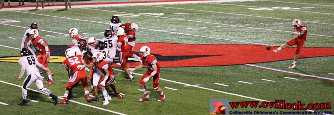 | Collinsville punted only one time Friday but it was very successful with Cale Hutchens (#9) pinning East Central at their own two yard line. | |||||||||||||||||||