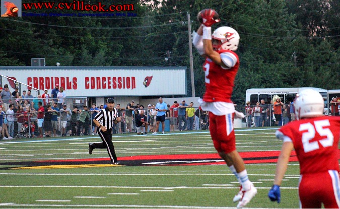 | Carson Stout (#2) picked off his 2nd East Central pass and took in in himself this time for a touchdown from about 20 yards out with 4:55 left before half and the score to 26-0. | |||||||||||||||||||