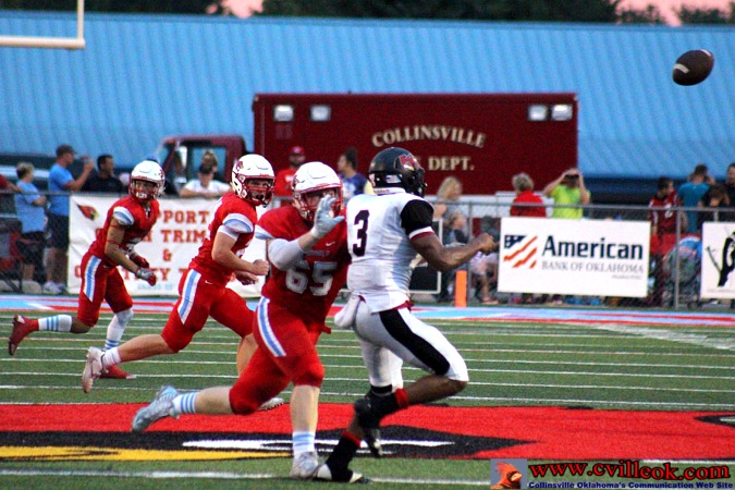 | The Collinsville ground game (with a host of experienced backs) was solid enough that the passing game played only a minor role this Friday. Tate Robards (#8) did air this one out early in the second half but it was incomplete. | |||||||||||||||||||