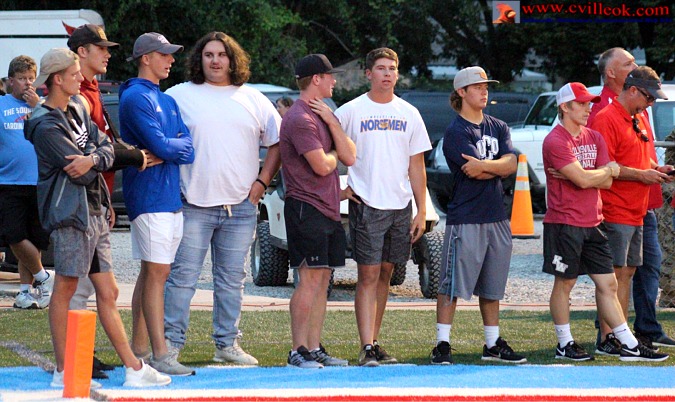 | There may have been more ... but these former Cardinals were back watching the 2017 football birds in the home opener (L-R): Sam West, Levi Draper, Seth Boomer, Jake Harrison, Blake Burd, Brannon Jordan, Nate Keim, and Brandon Lowe. | |||||||||||||||||||