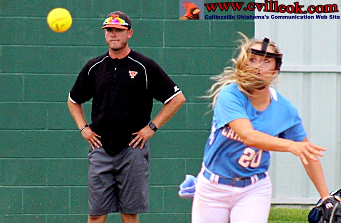 Crow (#27) pitched the first 6 innings for Collinsville and held Tahlequah
