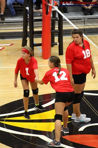 Weygand (1), and Riley Jones (2). -- Back Row: Coach Ryan Christian, Makayla Meadows (16), Presley Weathers (22), Makenzie Hadley (18), Courtney Priest (12), Abby Stamper (5), and Riley Batcher (15). |