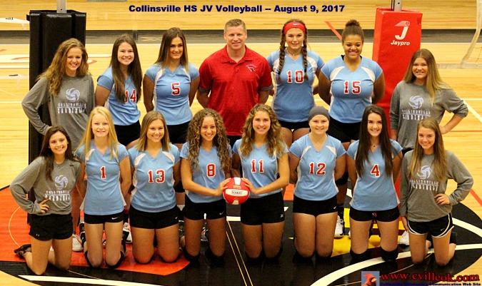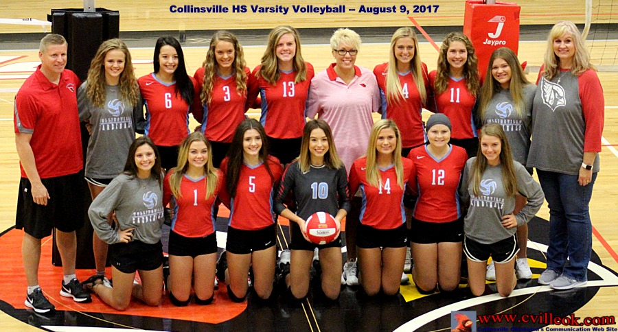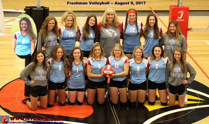 2017 Varsity Volleyball (L-R) -- Front Row: Georgia Hadley, Jaylyn Zimola (1), Jacy Rule (5), Gracie Haught (10), Kylie Enloe (14), Katie Ellis (12), and Faith Richardson. -- Back Row: Coach Ryan Christian, Kenadi Phillips, Annie Haught (6), Bryn Willt (3), Paris Hamilton (13), Head Coach Nicole Baughman, Ashley Flanagan (14), Gracie Baysinger (11), Kenna Martinez, and Coach Karen Loewe. | |||||||||||||