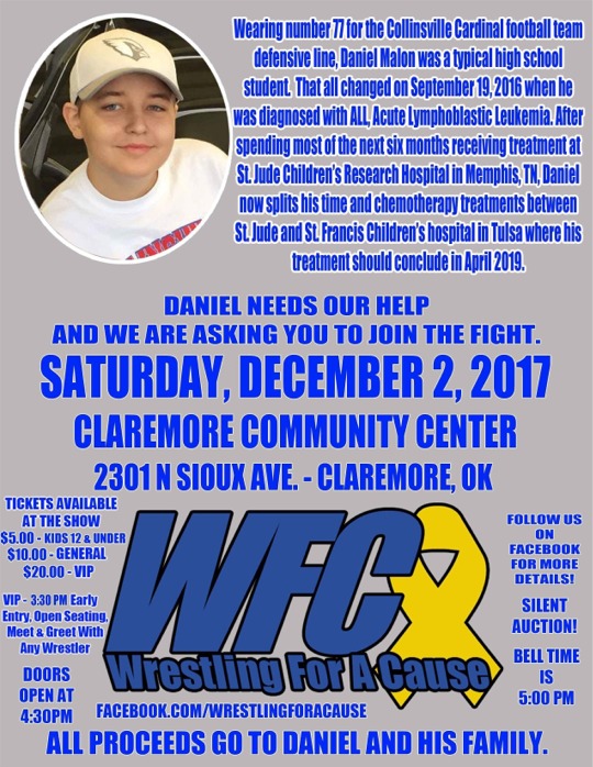 Dec. 29am-noon STEM Day at MS (for 1st-3rd grade) -- photos 9am-1pm Winterguard Tryouts tba JrHi Wrestling at Sand Springs Tournament 4pm & 7pm Boar's Heade Feast at HS (Photos) 5pm WFC (Wrestling for a Cause) Benefit for Daniel Malon at Claremore (more info) |