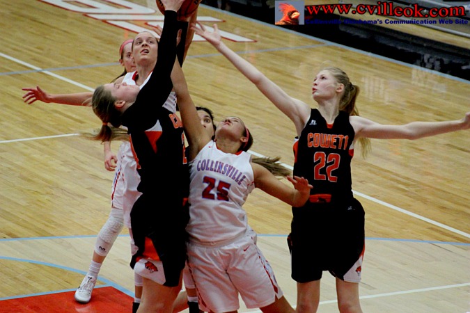 | The Collinsville Basketball Girls were down 30-38 with 1:11 left in the 3rd quarter Friday before outscoring Coweta 22-4 to close out the game. The score was tied 42-42 with 4 minutes left before the Lady Cards scored the final 10 points of the game. The Boys game was pretty close the whole way with the Cardinals holding on for a 47-46 victory. The JV boys won 36-31 but the JV girls did not have a game. | ||||||||