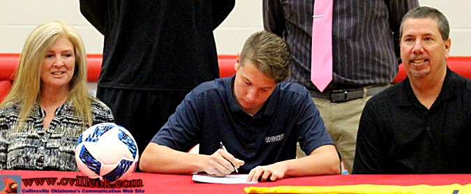 | Collinsville goalie Gage Powers signed (Tuesday Jan. 31, 2017) to play soccer for Oklahoma Wesleyan University in Bartlesville. His CHS senior season begins soon. | |||