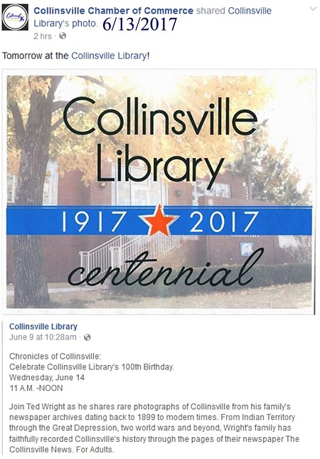 to the Library, citizens and Collinsville (along with a copy of the cvilleok.com