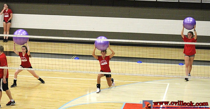 are some of the JrHi volleyball girls who joined the practices Monday