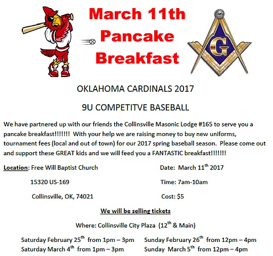 Mar. 117-10am Pancake Breakfast for youth baseball tba CHS Baseball at Owasso Tourn. |