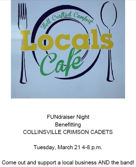 Mar. 21ACT test for all CHS Juniors 8:30am CHS Girls Tennis at Pryor Tournament CHS Talent Show (6th Hr) 4-8pm Locals Cafe benefit for CCC Band 4/5:30/7:30pm CHS Soccer JVboys+V) at Metro Christian 4:30 pm JV-W Baseball at Skiatook |