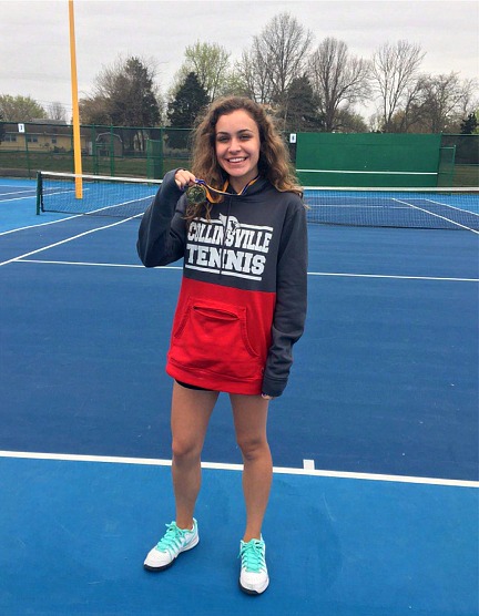 Allie Duggar and Lexi Draper started the day with a tough match. They played top seeded Grove. The first two sets ended with a split decision, tied 1-1. The two teams moved into a tiebreaker where Collinsville came up short. Disappointed, but not finished, they proceeded to win their way into the consolation finals match against the Tahlequah Tigers. In this match, Collinsville shifted into high gear. Spectators were treated to a hulk-out. Lexi took over the match at net, putting away anything the Tigers hit at her. She was no less effective from the baseline, ripping forehand winners that tested the durability of Wilson's tennis balls. Late in the second set, the Tigers tried to dig-in and turn things around. They found out, their shovel wasn't big enough. Draper and Duggar finished the day as consolation champs.