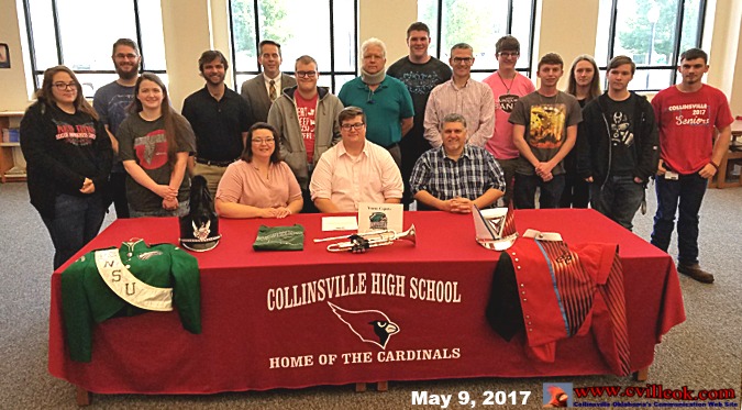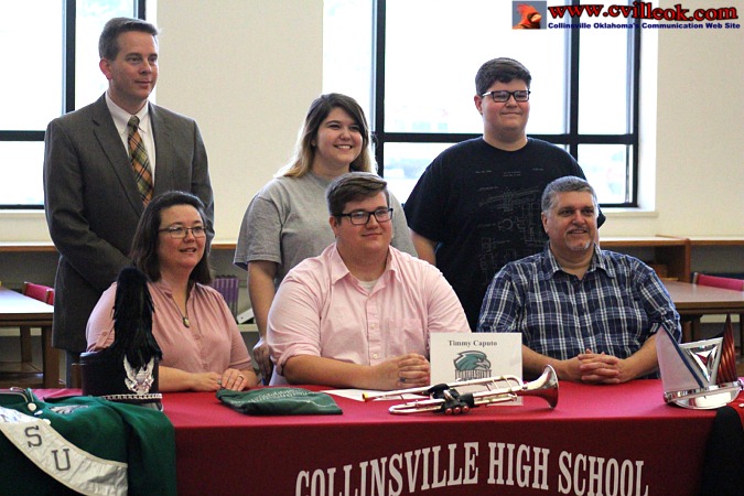| Timmy Caputo signed to continue his band career with NSU at Tahlequah. He was joined by his parents, siblings and NSU Band Director Dr.James Adams in this photo. | |||||