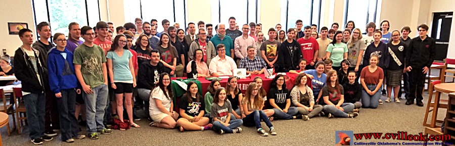 | The other 2017 CCC Band Seniors and his CHS/NSU band directors joined in this photo for Tim Caputo's signing held at the Middle School Library (next door to the bandroom). All the other CCC band students are show in the photo at the top of the page. | |||||