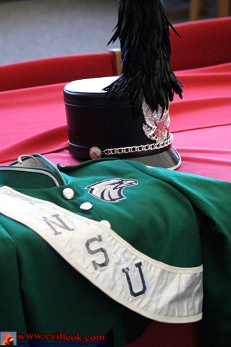 | Dr. James Adams (Director of NSU Bands) directed the morning practice of the Collinsville HS band (while in town for Tim Caputo's signing). Collinsville band director Rod Mackey got to sit back and enjoy. -- NSU Band Link | |||||