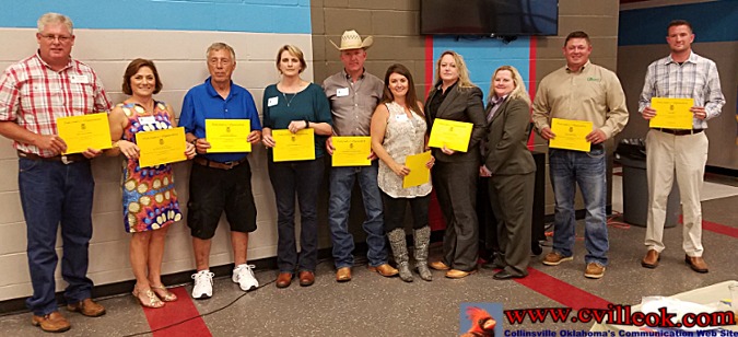 | New 2017-18 FFA Officers (L-R) - Mya Swartz (Parlimentarian), Jeremy Sanders (Historian), Hannah Ramsey (Chaplain), McKinna Lewis (Reporter), Daniel Kaiser (Sentinel), Laney Branen (Treasurer), Bailey Nunes (Secretary), Julie Branen (Vice President), and Kaylyn Branen (President). -- TWEET | ||||
