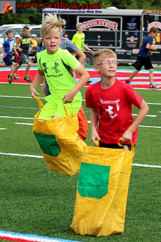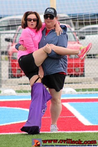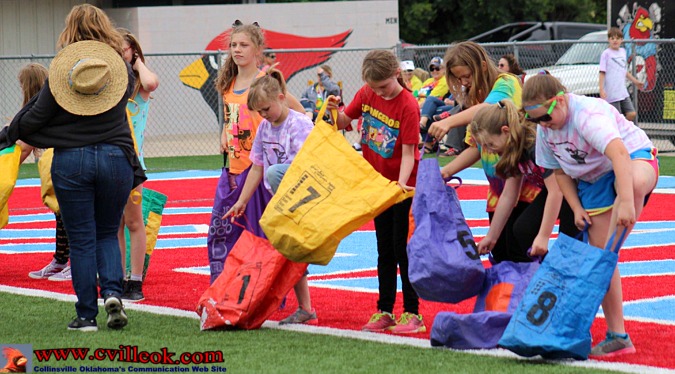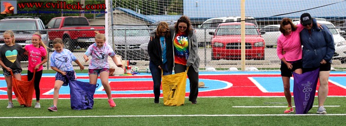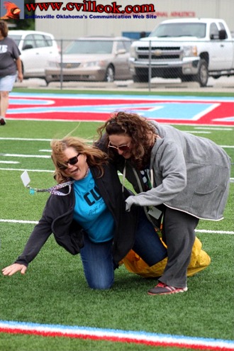 After experimenting with some creative techniques for the 3-legged race these teachers went with the traditional race form (below) and had a fast start but were beaten by the more nimble 4th graders. | ||||||