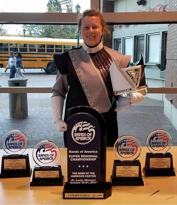--Oct 21: Drum Major, Nicole Schrag, with all the trophies the Crimson