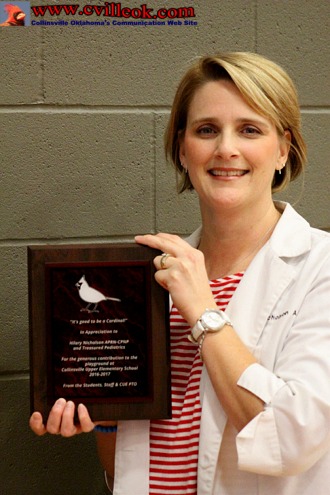 | Dr. Hilary Nicholson received special appreciation for a $5000 mtach to Collinsville Upper Elementary fundraisers for additional playground equipment. | ||||