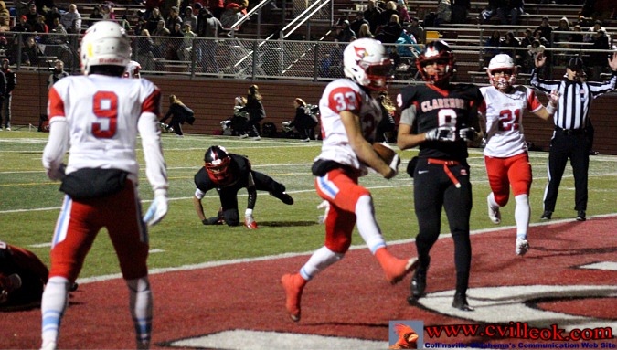 | Collinsville kicked off to Claremore to start the 3rd quarter and that first possession ended with Claremore's punter unable to get the handle on a low snap and Collinsville got a gift, taking over at Claremore's 29. | |||||||||||||||||||||||||||||||