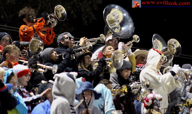 | The Collinsville Crimson Cadet band relaxed a bit with Halloween costumes Friday at Claremore after a busy and successful previous few weeks including being OBA runners-up, regional champs at BOA in St. Louis and all I's at OSSAA. | |||||||||||||||||||||||||||||||