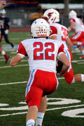 | Brayden Burd (#22) needed just 5 and 1 yard carries to score at 6:10 in the first quarter.bringing the score to 28-0 after the PAT. Another Hale "overhead" snap was batted out of the back of the endzone to bring the score to 30-0 with 4:22 still remaining in the first quarter. | ||||||||||||||||||||||