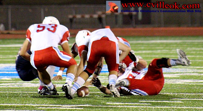 | Colin Dooling (#82) recovered this Hale fumble at Collinsville's 39 with 3 minutes left in the 3rd quarter. | ||||||||||||||||||||||