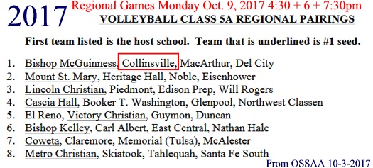 Finals -vs- Bishop McGuinness tonight -- per Jim Riley 10/9/2017 |