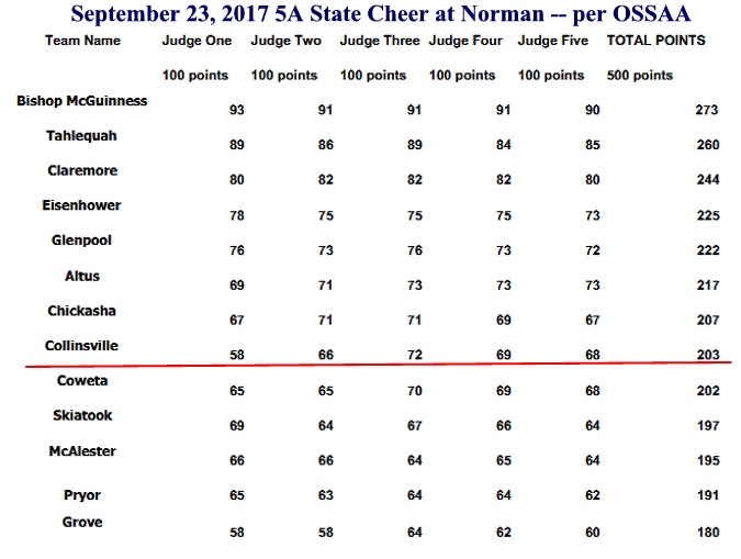 The Collinsville High School Cheer Squad has had the top grade point team average of 5A Cheer teams at the state competition for four straight years. | ||||