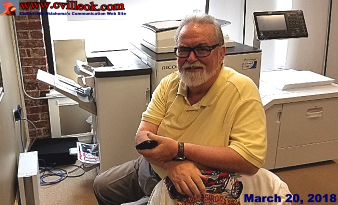 | While I was celebrating putting news about Collinsville online (on cvilleok) for 15 years Tuesday, Bill Johnston was renewing an old tradition as he printed this week's issue of the Collinsville Times Star newspaper in his Collinsville office. As far as I know this was the first newspaper actually printed in Collinsville in over three decades. I don't know the exact date, but am guestimating my Dad (John Wright) stopped printing The Collinsville News locally in about 1986. Newspapers after that date were printed on presses in other communities and brought back to town for distribution. Bill's laser printer is much more modern than the presses I was famillar with and have samples of in the newspaper museum. The print quality is amazing. If you are not already a subscriber, stop by and purchase a copy Thursday, you will be impressed! The very first newspaper was printed in Collinsville on May 11, 1899 by W. L. Wright. -- Ted Wright 3/20/2018 | |||||||