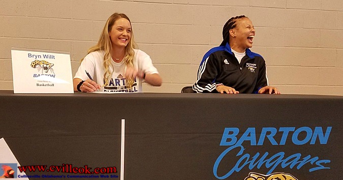 Joining Bryn Willt at her April 17th basketbal signing (with Barton Community College) were her parents (Seated) Kevin and Tina Willt & (Standing L-R) Barton Assistant Coach Takesha Watson, brother Logan Willt, and CHS Basketball Coach Brad Cantrell. Also a bunch of friends and teammates (below). | |||||