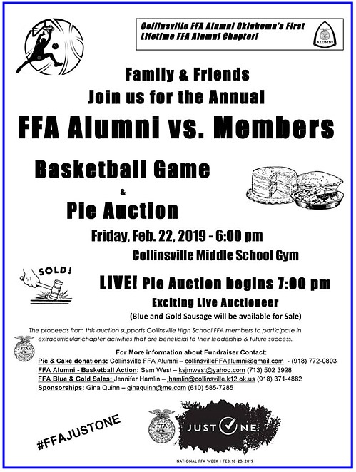 Feb. 286pm CHS STUCO 3-vs-3 Basketball Tournament at CHS 8pm CHS Basketball Girls at Area Tournament at Skiatook -vs- Claremore FFA - Tulsa County Show |