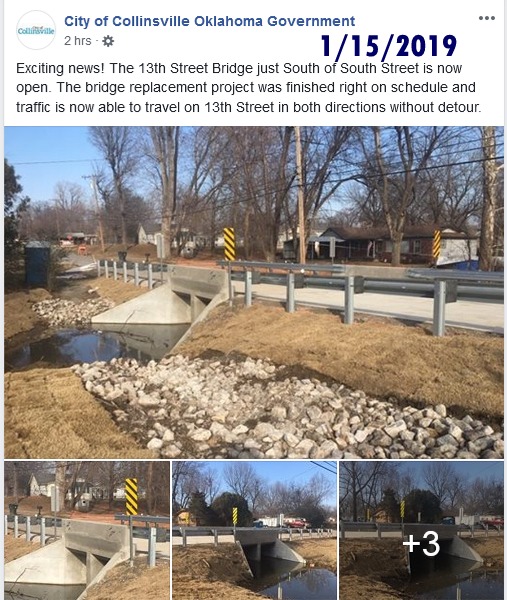 January 21, 2019 13th St. Bridge Completed |