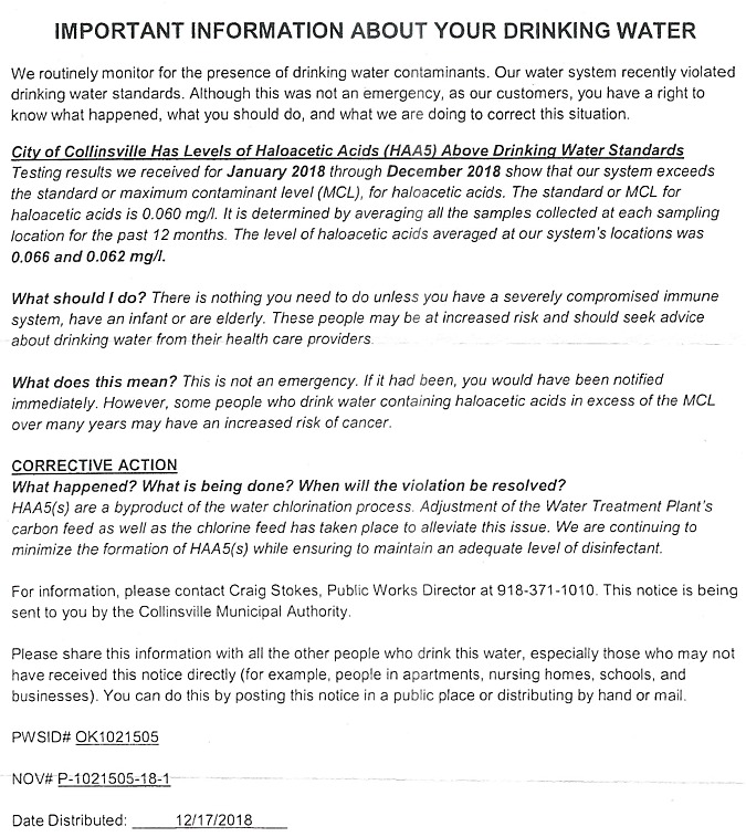 December 2018 Water Quality Issue Notice --