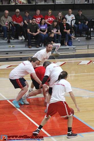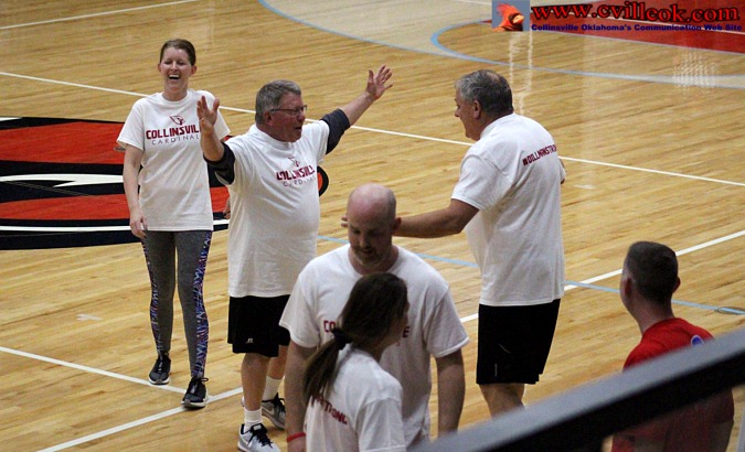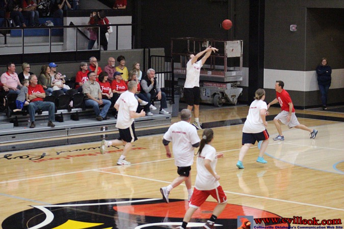 Daniel Dillman is a first year teacher at Collinsville (6th grade math), but this is his 24th year teaching. He taught at Skiatook before the switch to Collinsville this school year. The school faculty at Collinsvile (in white) and Skiatook (in red) high schools came together to play a benefit basketball game to raise funds to help Daniel in his battle with cancer, | ||||||||||||||||||||||||||