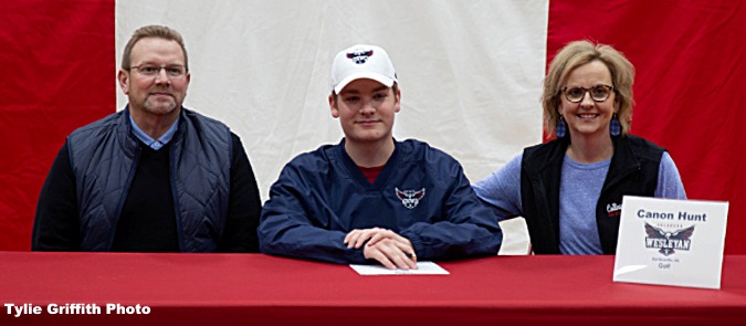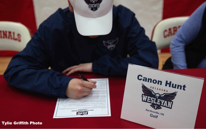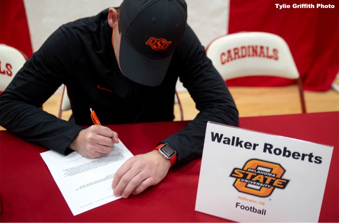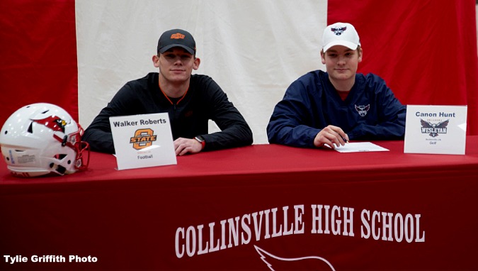 | Walker Roberts (left) has signed for football at Oklahoma State University and Canon Hunt (right) has signed for golf at Oklahoma Wesleyan at Bartlesville. | |||