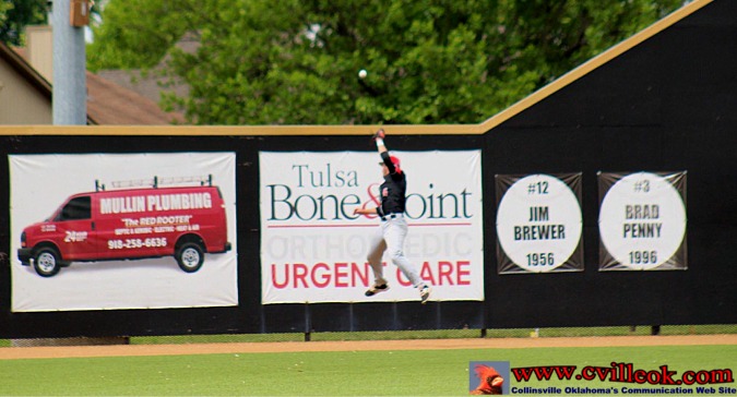 Cale Hutchens prevented further 1st inning damage with this leaping catch at the centerfield wall after Carl Albert jumped out to a 3 run lead (including two homers). | |||||||||||||||||||