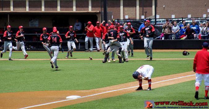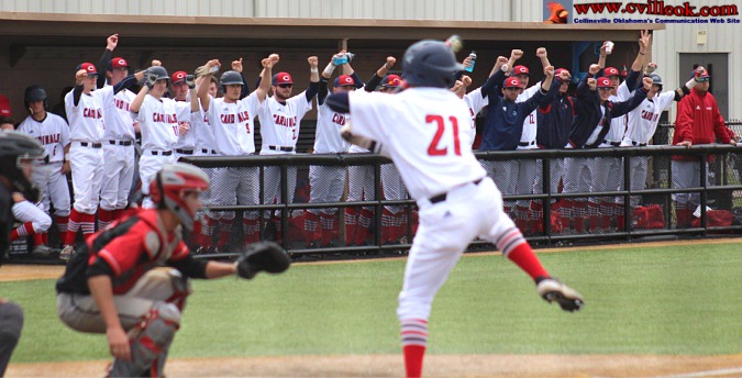 Carl Albert started the celebration after escaping the Cardinals loading the bases in the 7th with two out (Barnes walk, Minton single, Hutchens walk) but being unable to convert. This ended Collinsville's season and sent Carl Albert to the finals against Pryor at OneOK the next day, with Pryor the victor there for the 5A title.. | |||||||||||||||||||