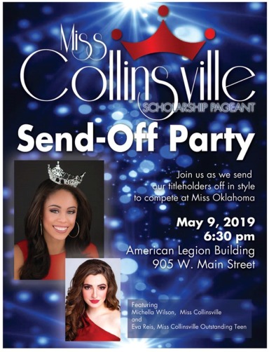 May 96:30pm Miss Collinsville Sendoff at Veterans Building on Main 4pm State Baseball at BA (-vs- Lawton Mac) 7pm 6th Grade Gallery Walk Art Show at Wilson 6thGrade Center 7pm HS Band Spring Concert at CHS |