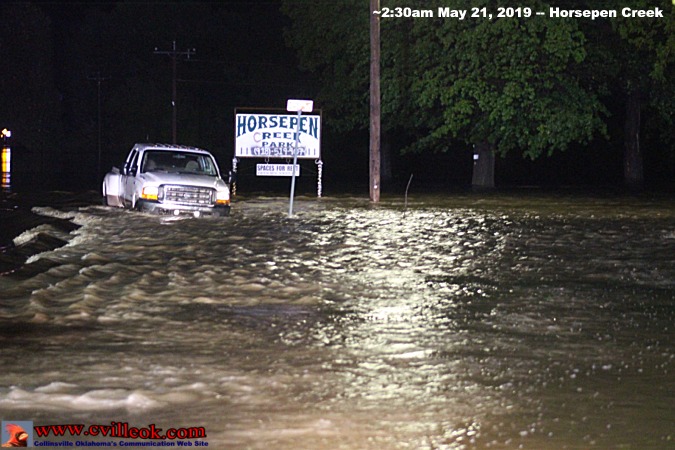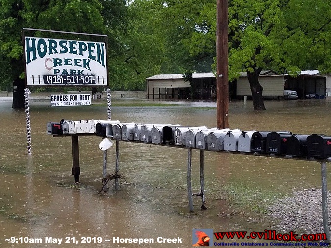 Horsepen Creek Update -- 6/20/2019 -- Jack Ashby -- Well, I grew up in Collinsville. I also checked the TMAPC 100 year flood lines. I was behind that line. We had 23 inches of rain in 30 days, this was a 200-year flood or may not happen again. Not all the trailers got water inside...you can pick your spots. I got rainwater inside from the storm blowing my door, but no flood water inside, nor did my neighbors...but many others did. I can redo my undercarriage insulation and get another car...many lost their homes...but my neighbor and I back up against the hill. The water would have never gotten up the driveway in a 100-year flood, so many people did take due precautions. I will stay but will move my car if it rains like that again. I have suggested that one small area that may flood be set up as sites for campers and fifth wheels. Probably 80% or more of the homes were not damaged. | |||||