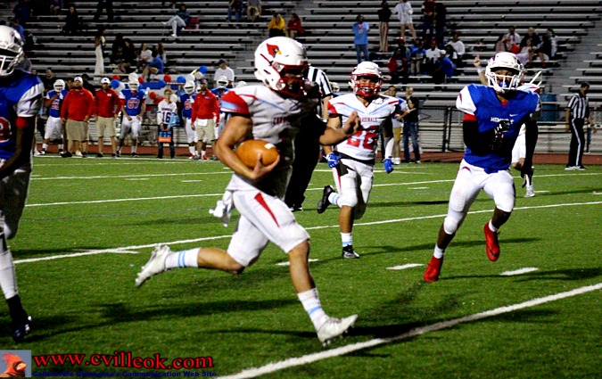 Quarterback Kolton Allphin (#1) broke the plane of the endzone and continued straight towards the official to hand him the ball at 8:57 in the first quarter as he capped the Cardinal's opening drive of the game on a 13 yard run. Ashton Jones kicked the extra point for a 7-0 score. | ||||||||||||||||||||||||