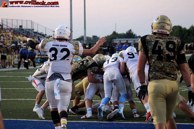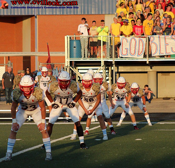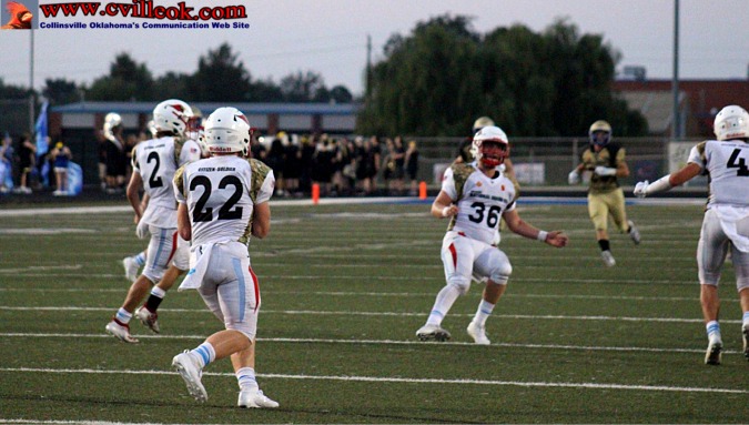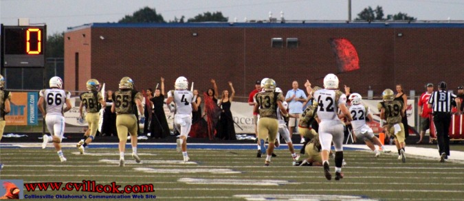| Collinsville kicked off to start the game, then stopped Oologah after they had moved into Collinsville territory and punted down to Collinsville's 6 yard line to start the Cards first possession. Collinsville gained out to the 10 (above) before delay and motion penalties backed them up. | ||||||||||||||||||||||||||||