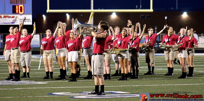 | Collinsville's Crimson Cadet Band presented a portion of their 2019 marching program at the half. The band's first marching contest is September 28 at Owasso. | ||||||||||||||||||||||||||||
