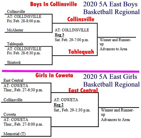 up BK at Area) 43-51 Collinsville loss to Tahlequah in Regional Basketball Final. Was 43-46 with 41 seconds left. |