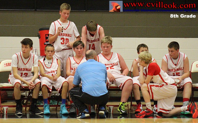 8th Grade Basketball Boys (Team 2) -- 2015-2016 (Left to Right) Front Row: Dawson Jefferson (11), Alex Guthrie (11), Jake Lawson (10), and Nick Johnson (2). -- Back Row: Payne Houts (30), Riley Jackson (14), Brandon Becerra (13), Tanner Jones (32), and Trevor Janzen (15). |