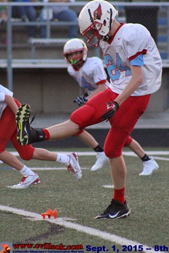 - Trevin Hodges (#88), Grant Casebeer (#33), and Aiden Calloway (#80) provide part of the blocking for Ethan Cole (#24) kicking the extra point ... (6th Grade)