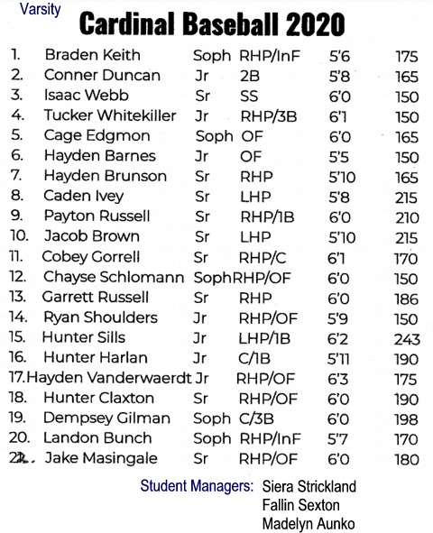 2017 Baseball Freshman (not all shown and not in photo order):