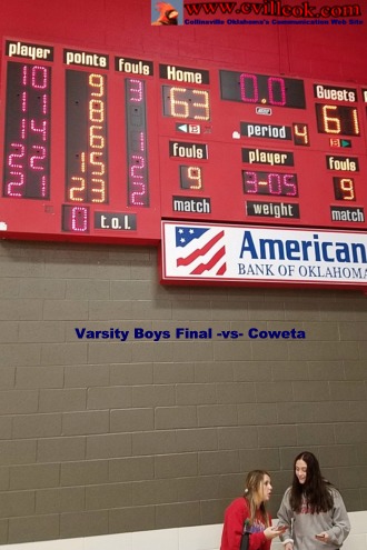 basketball wins over Coweta. Girls 43-38 & Boys 55-44. Collinsville varsity girls lost 49-54. Collinsville varsity boys won 63-61. |