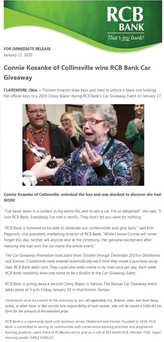 Home (email questions/comments to wrightted@aol.com). Ted Wright -- last update 1/21/2020 (RCBCarGiveaway-Kosanke.html) www.cvilleok.com Copyright 2020 -- Collinsville, Oklahoma