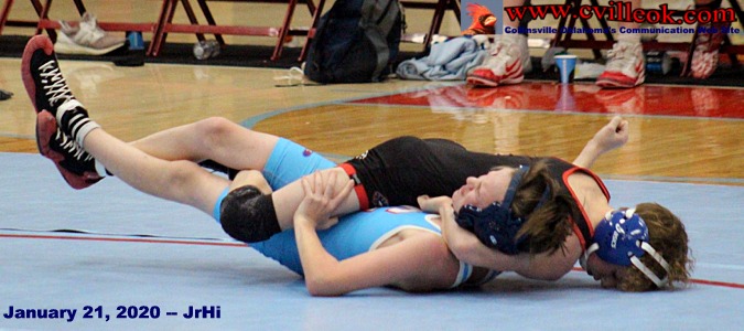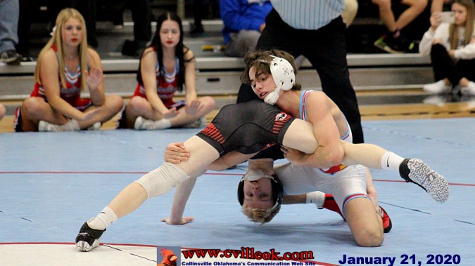 35-26 Collinsville Wrestling dual victory over Skiatook here Tuesday. JrHi tied at 39-39. -- JrHi Tweet + HS Video Tweet + Sample Photos + Owasso Reporter + Tulsa World -- Jan. 21, 2020 | |||||